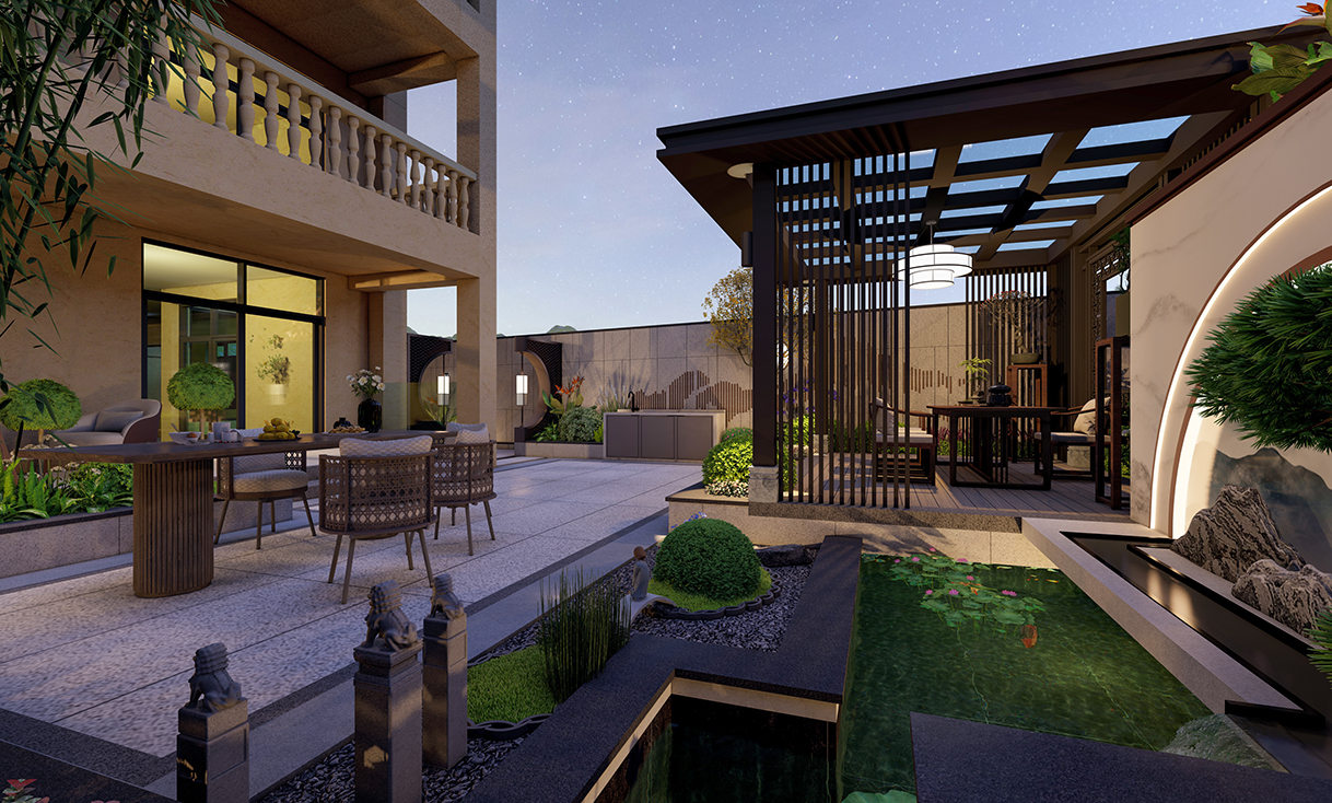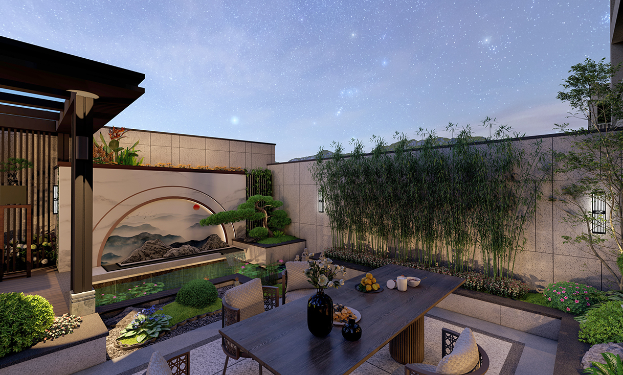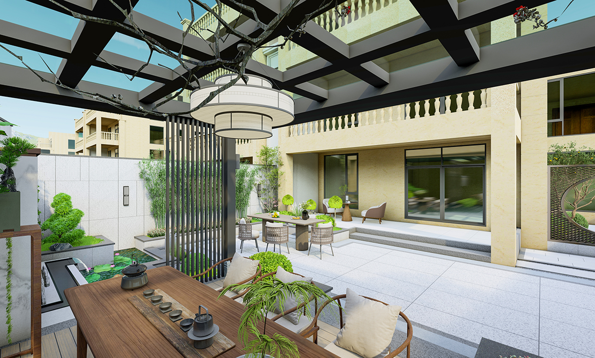 本案为一座80㎡的别墅侧院花园,业主钟情于新中式风格的禅意与气韵,希望在有限空间内打造一个集茶室、休闲功能于一体的静谧庭院。