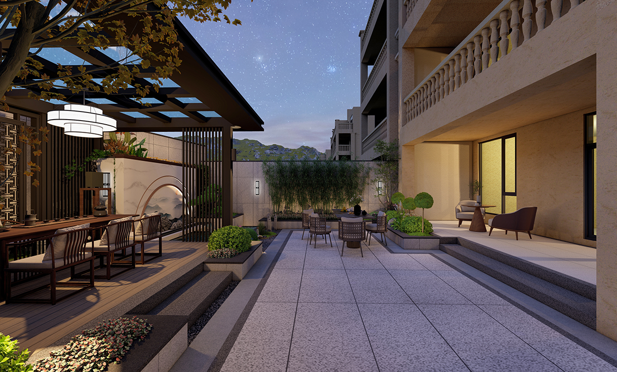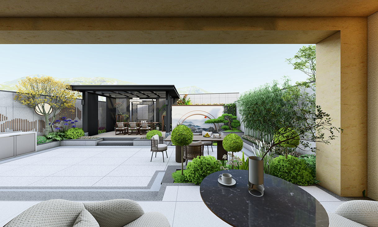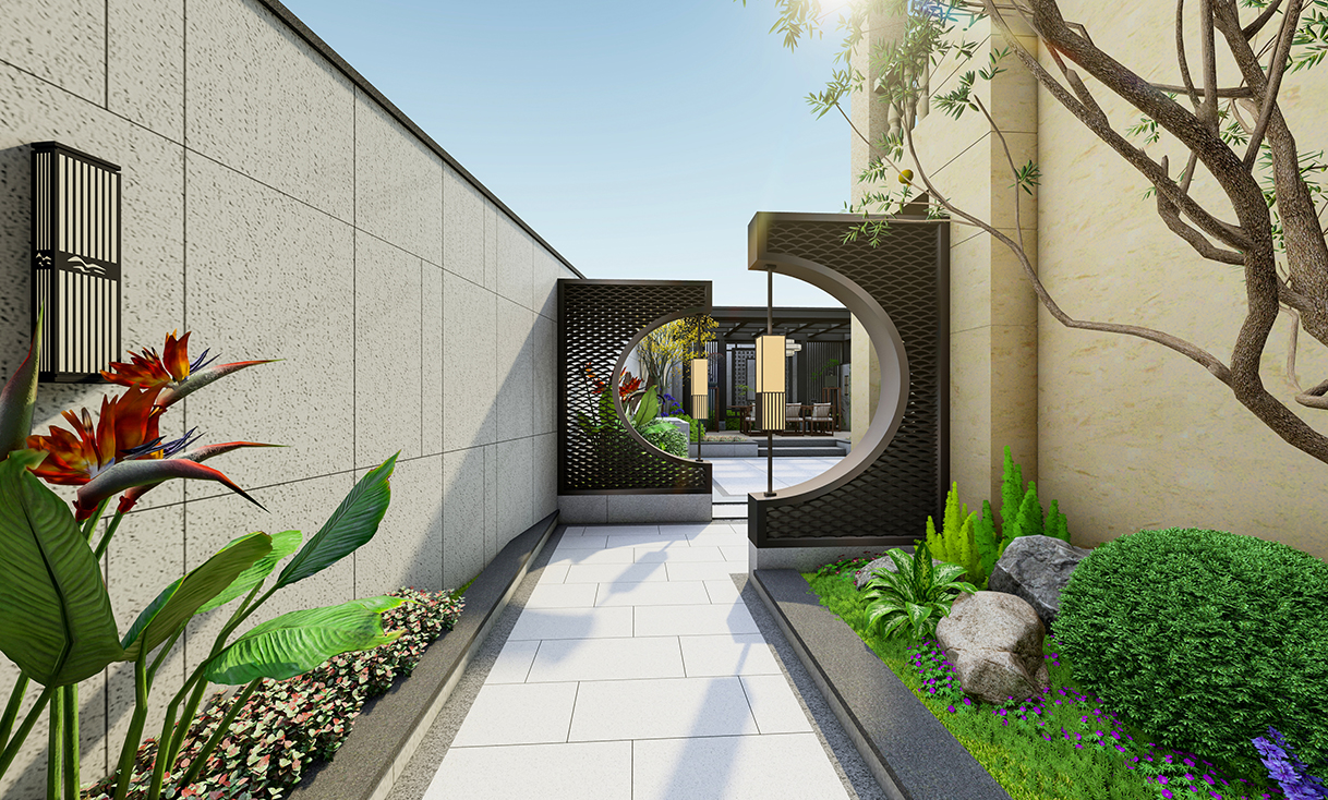 为规避方正格局可能带来的呆板,我们在细节处巧妙融入自然笔触:弧形瓦片勾勒出灵动的草径边界,角落点缀以精巧的禅意小景。这些细腻的设计语言,为规整的空间注入了生机与韵律。