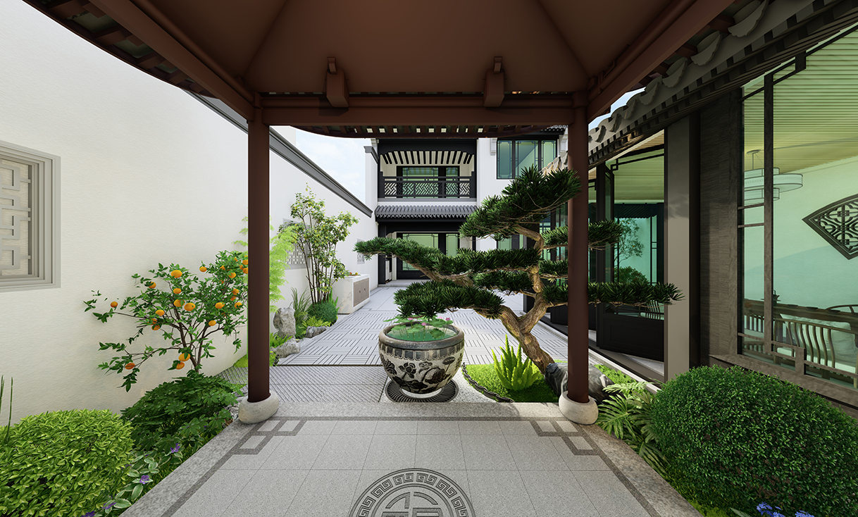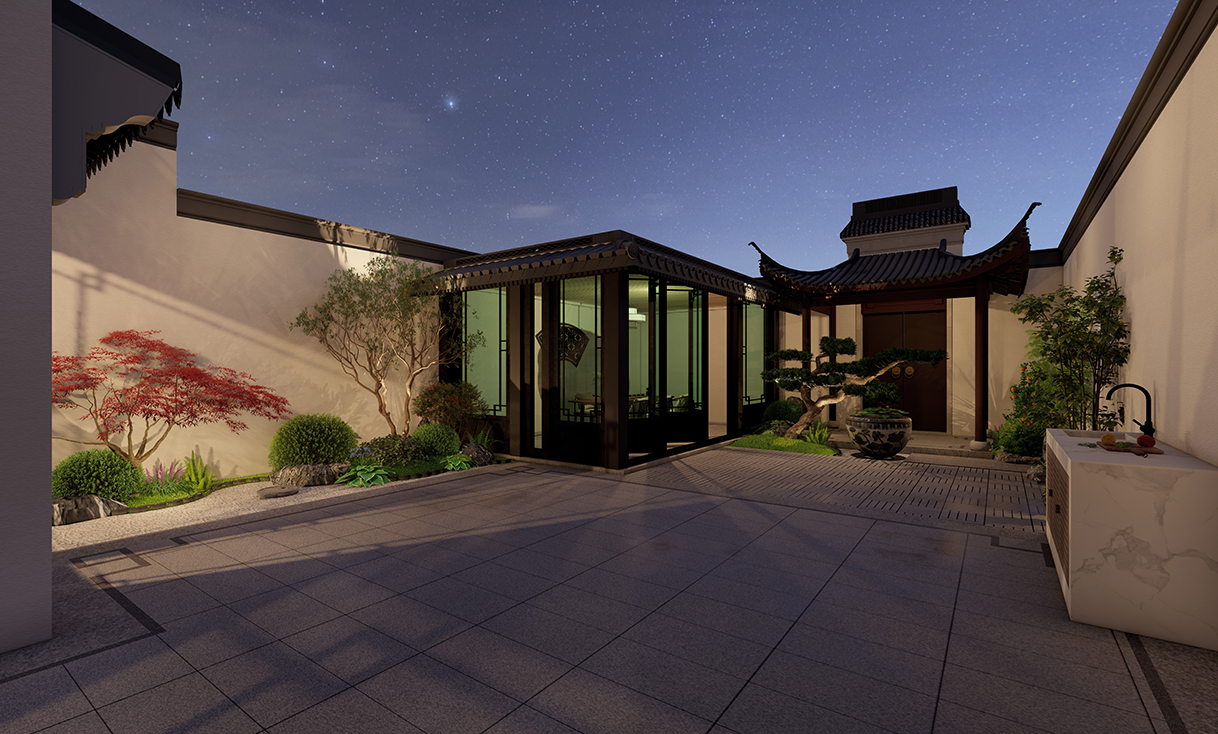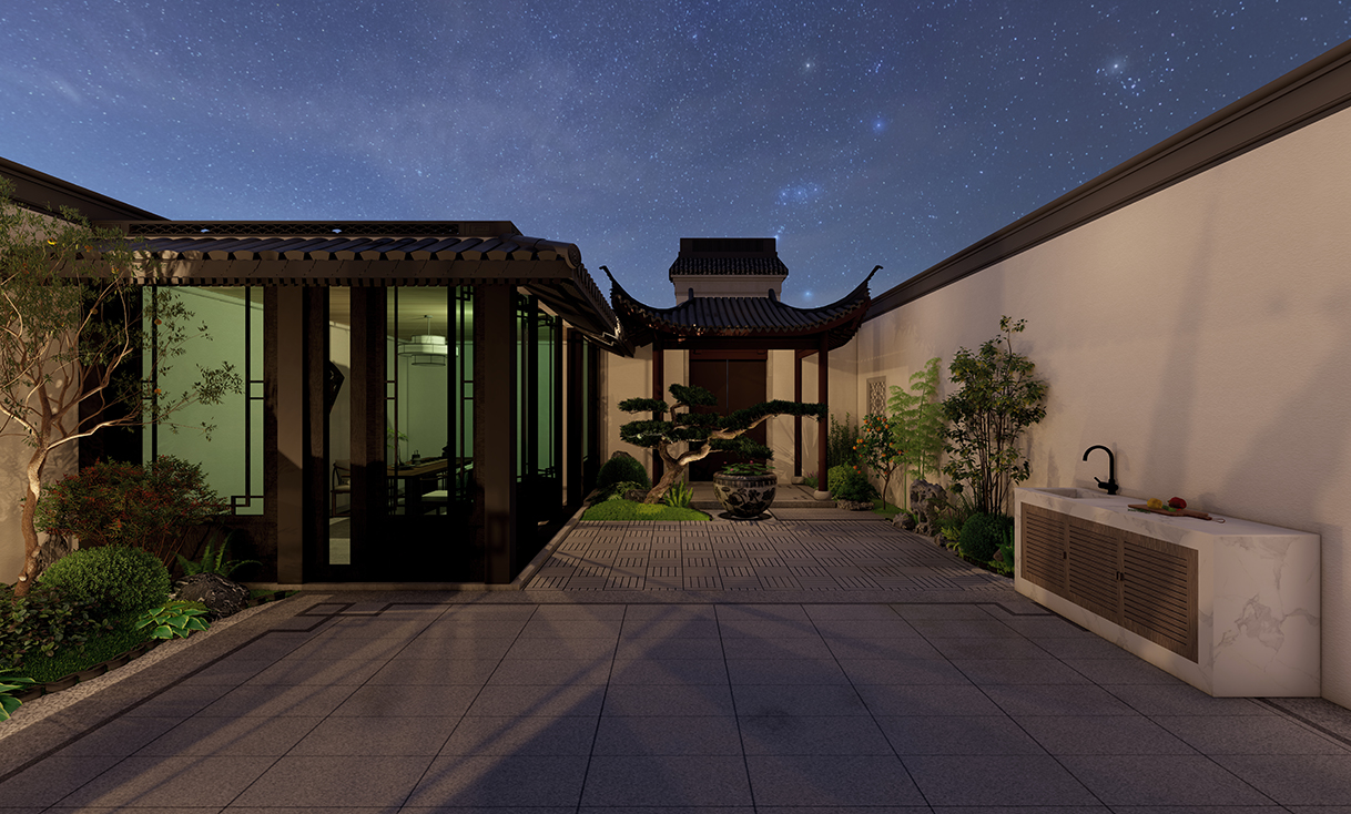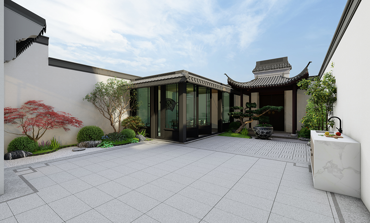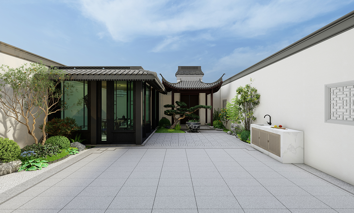 曲径通幽处,三亭映画:现代宅院的中式回归