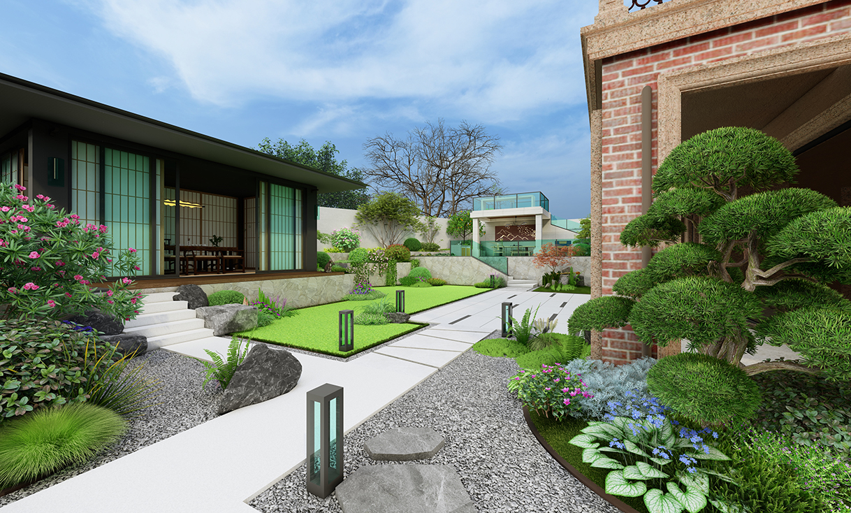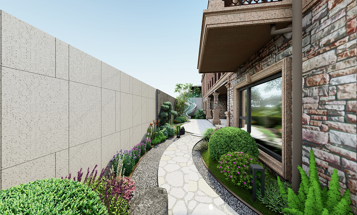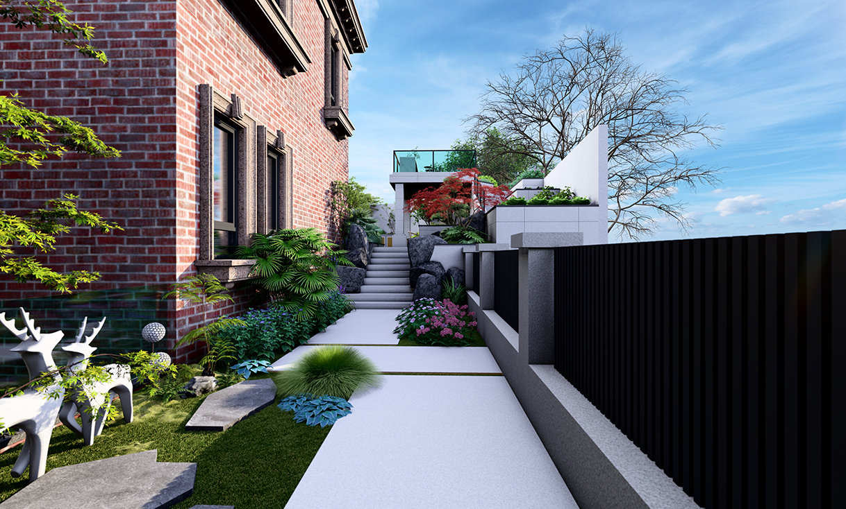 园林以开阔的草坪作为视觉核心,营造呼吸感;搭配精致的花境作为点缀,增添自然野趣。整体设计将建筑、景观与人居生活无缝衔接,于简约中见细节,在错落中显秩序,成就了一处宁静而富有现代美学的私属庭院。