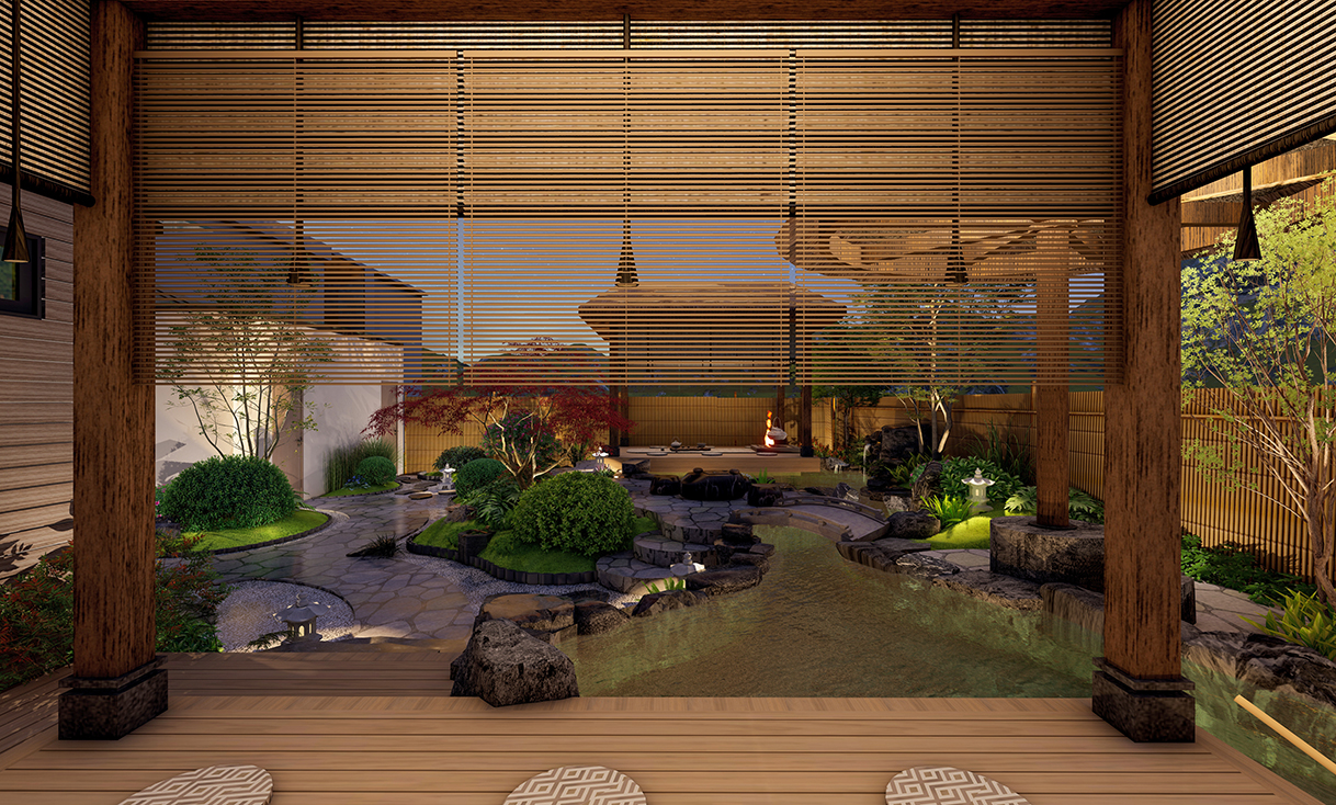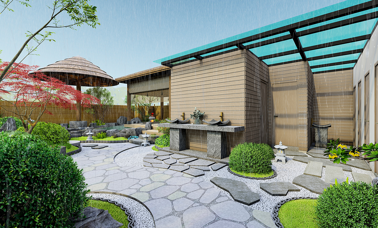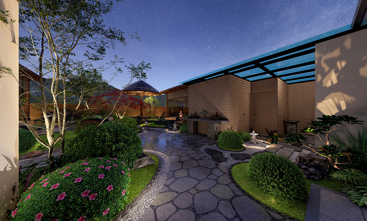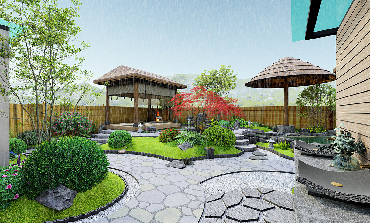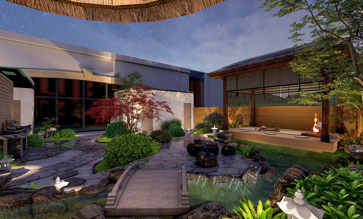 本案通过古典元素的现代演绎,将亭、桥、径、石有机融合,打造出一处供业主静思、品茶、会友的静谧桃源,实现了传统韵味与实用功能的完美统一。