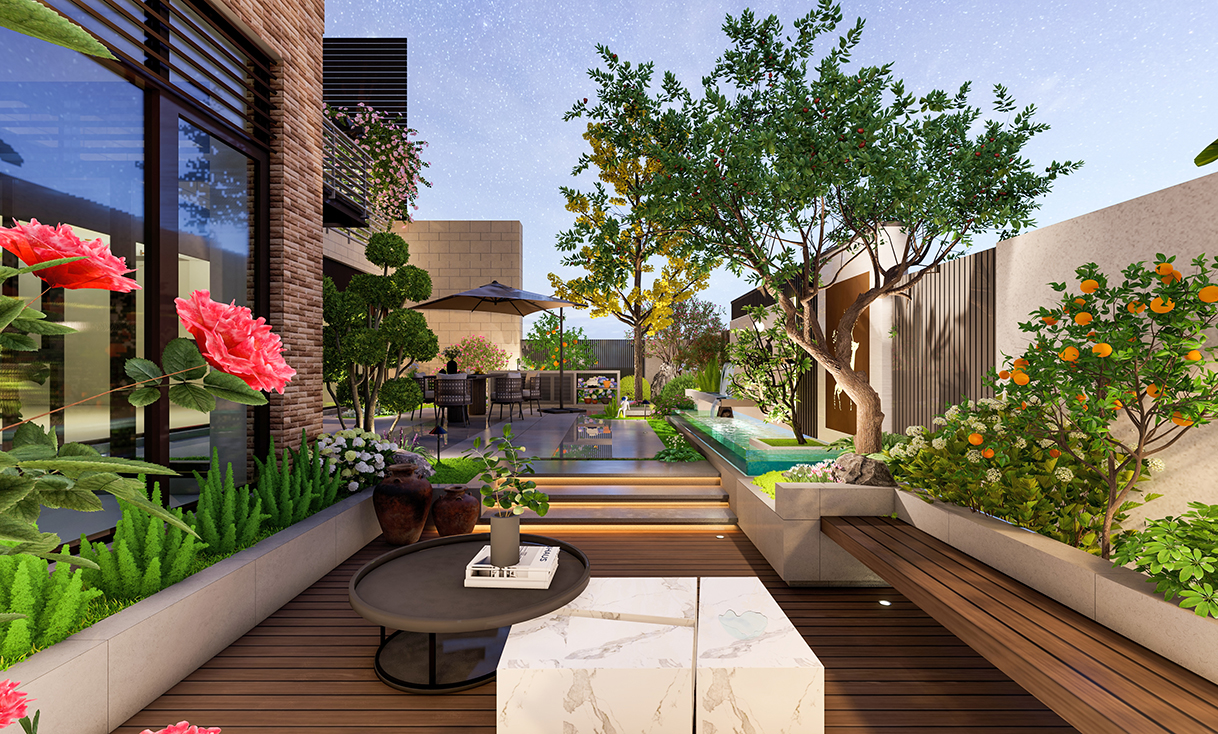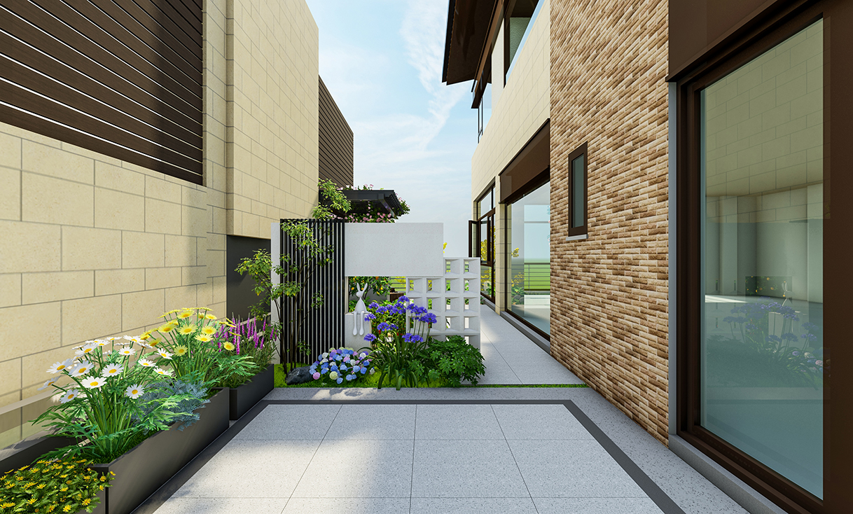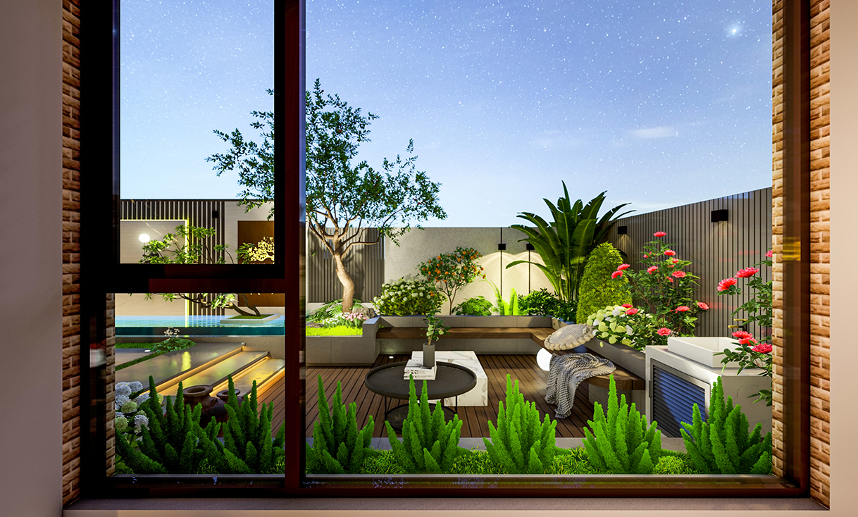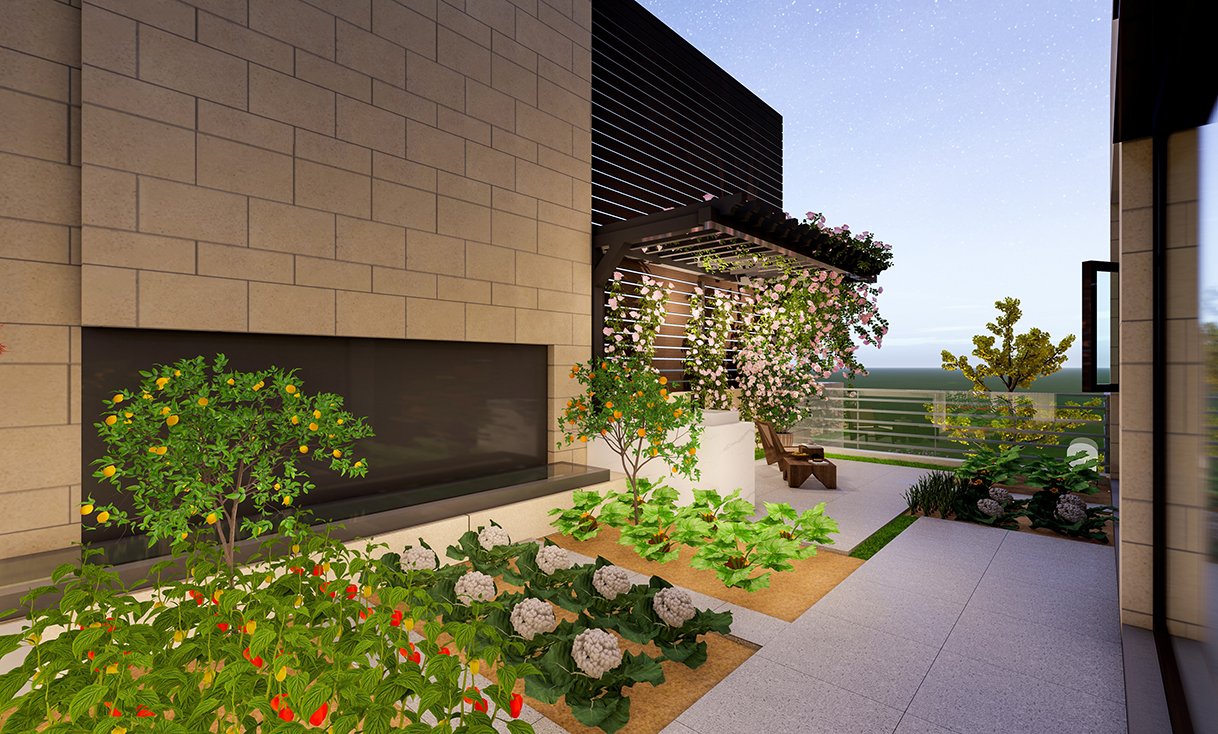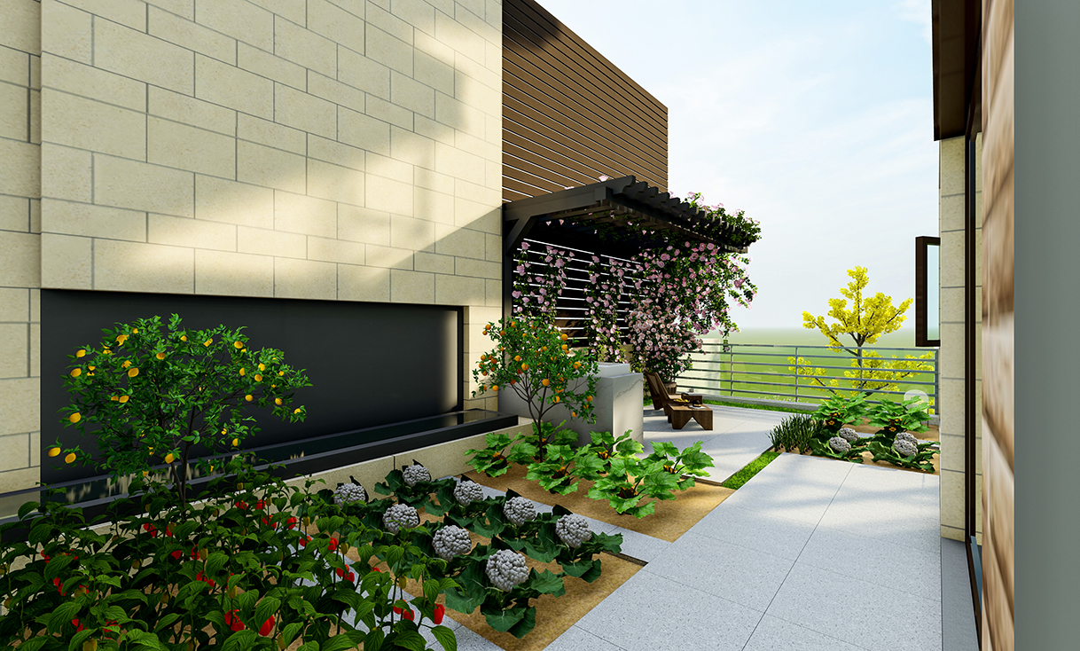 这是一座现代简约风格的休闲庭院。设计以“简洁、易打理”为核心,通过开放布局与精致构景,营造出舒缓的居住体验。